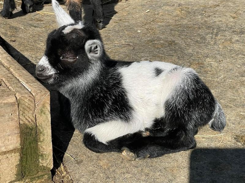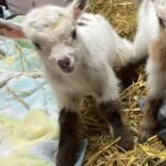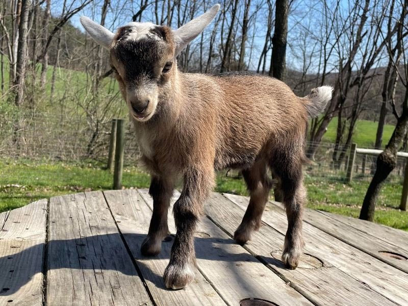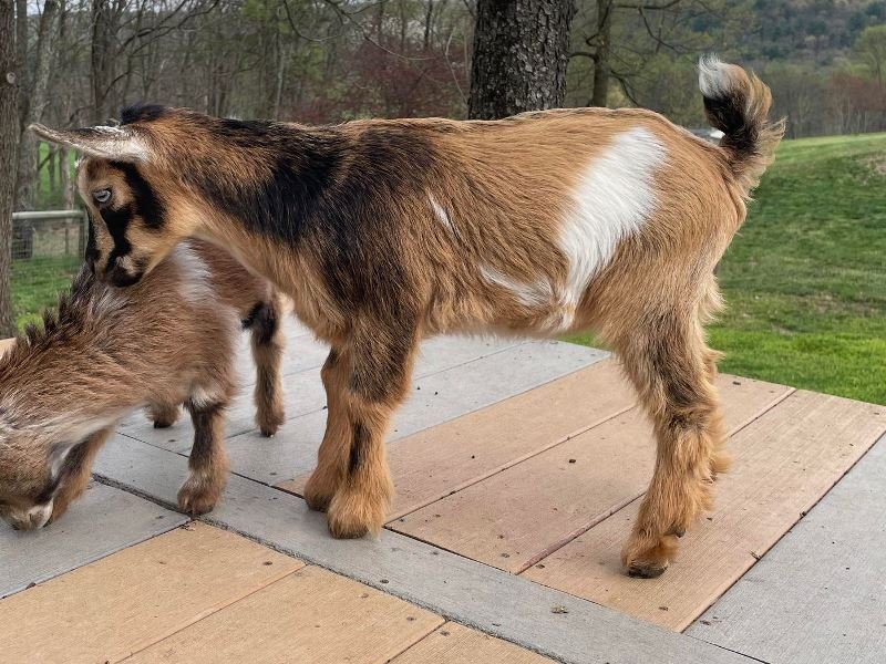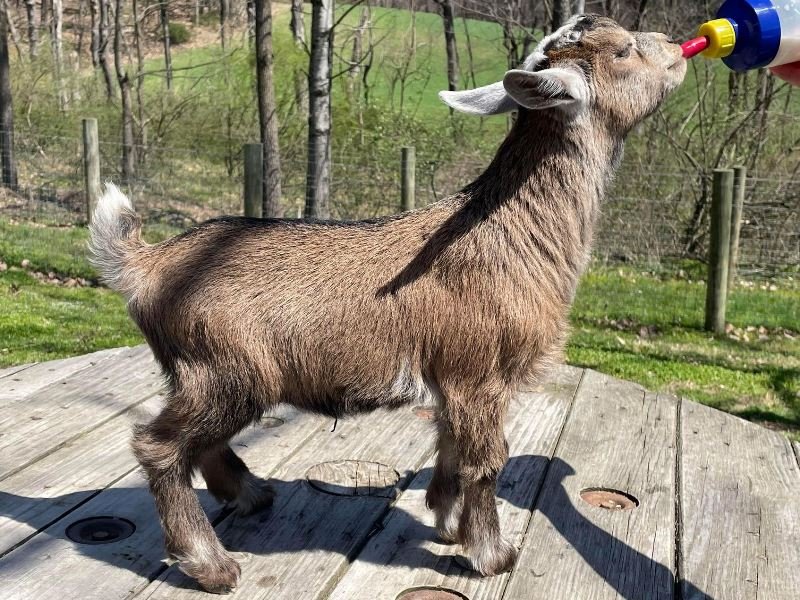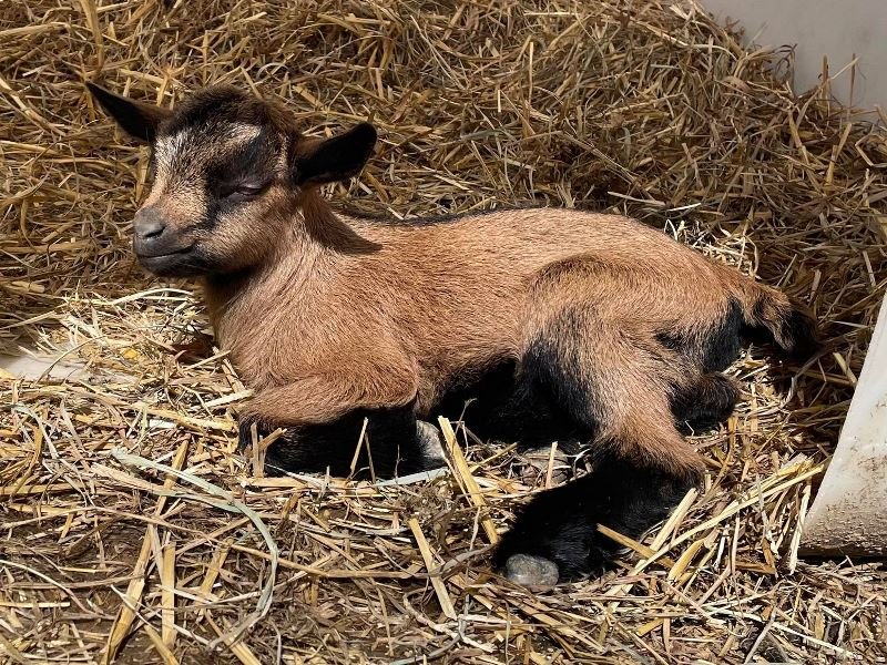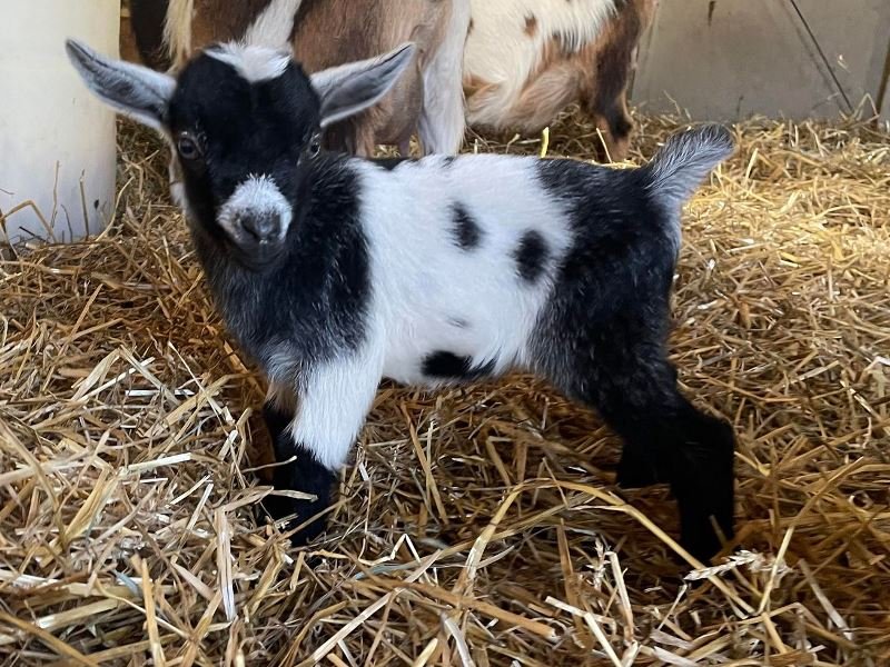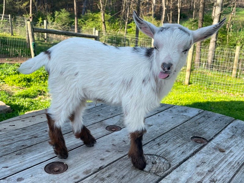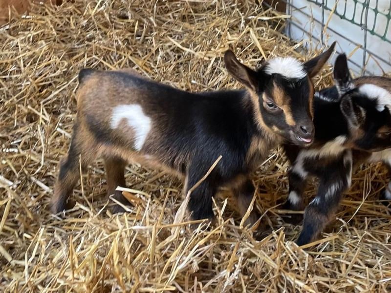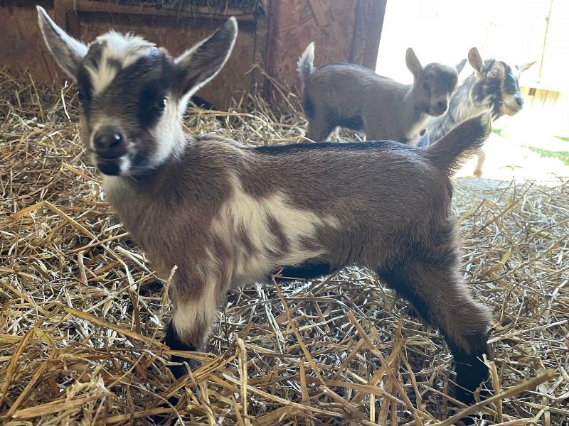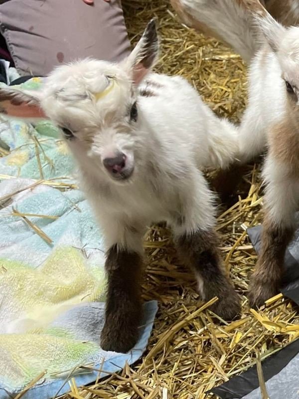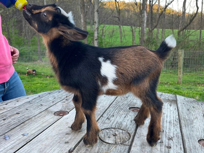 Bailey’s came to us in the fall last year with her daughter Mavis. She’s quite small in size, much smaller than our other Nigerians. After going through a breeding season with her, we don’t wish to keep breeding her. We like our goats a bit bigger. We did have to pull kids this year and struggled to fit inside between her hip bones. Not that she’ll have issues in the future as she did have 2 kiddings prior to coming here that were completely unassisted. We just ended up having quints in there and they were quite tangled and needed some help. Bailey’s had a pretty rough delivery but she’s doing fine now. I hate to put her through that again here. Ideally, I’d love to see her go to a performance home where she can continue to produce beautiful kids. She would need to have someone with smaller hands to be able to assist or be willing to work with a vet that can assist. She also has the option of just being loved as a pet. She’s a sweet goat and easy to handle.