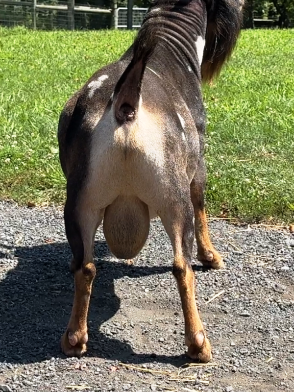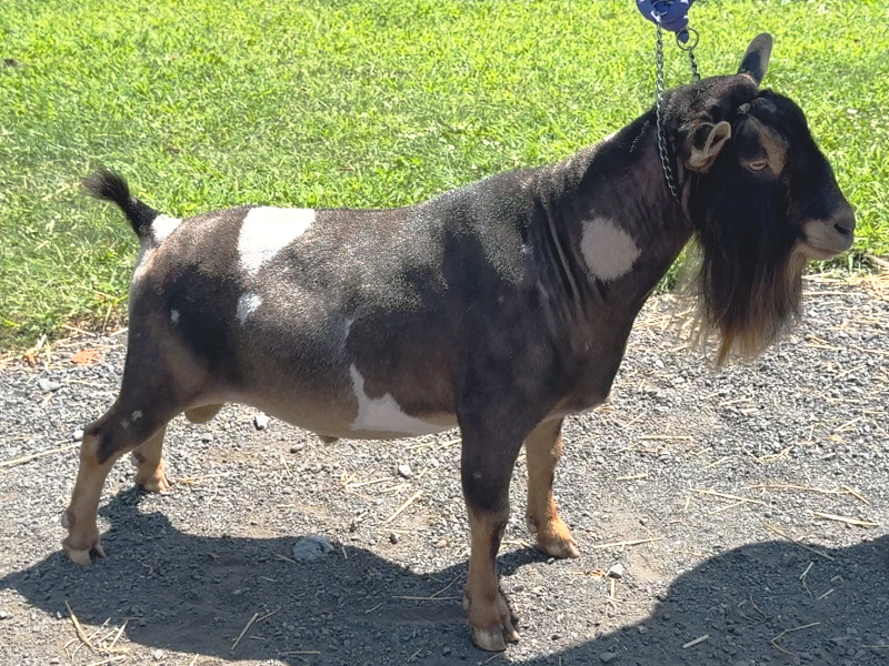 Spiderroll (aka Spidey) is a very wide big buck. He’s been adding width to his offspring which is something we’ve been looking for. Like is sire, Hammer in the Sky, he is super slow to mature. Based on what we’re seeing, he’ll be in his prime at about 6 yrs old. It took him almost 4 years just to grow into his big wide head that truly resembles the roots he has in his pedigree from Old Mountain Farm.